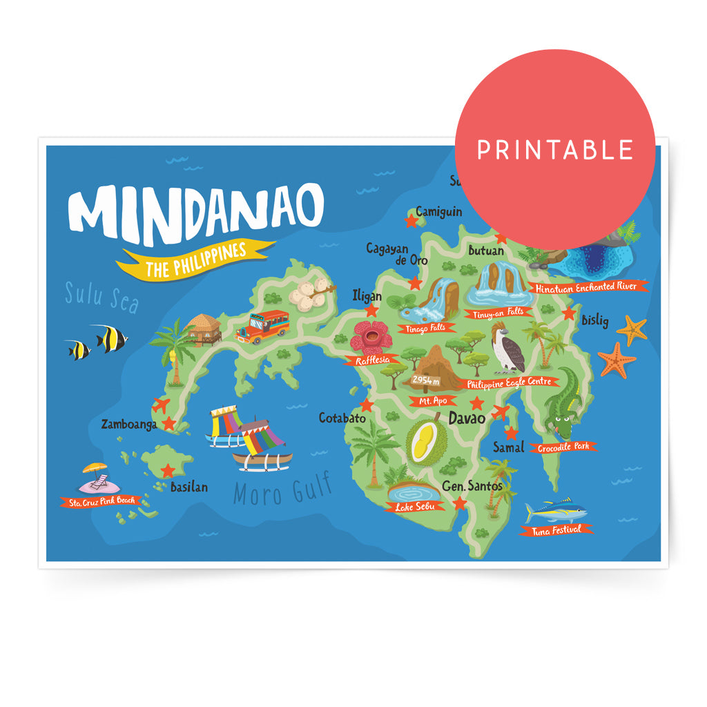 Mindanao Illustrated Map Printable Wall Art Poster โ Pinspired Art