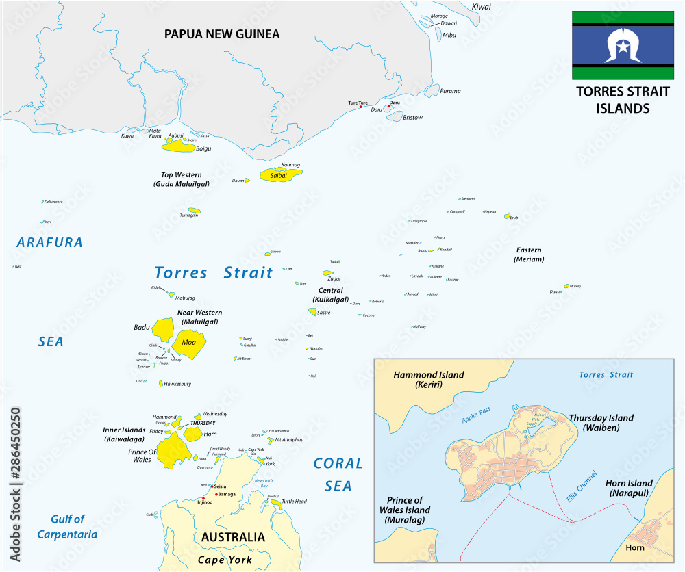 Map of the Australian Torres Strait Islands with flag Stock Vector